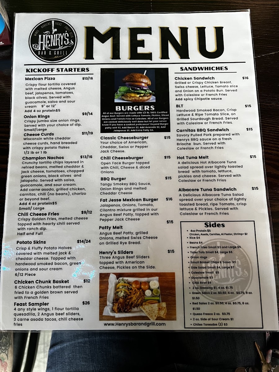What makes Henry's stand out is its welcoming vibe. You’ll find comfort in every bite, whether you're grabbing a quick bite during a busy day or enjoying a relaxed meal with friends. From the appetizers to the desserts, each dish is crafted to satisfy your cravings and keep you coming back for more. With great food, good company, and a cozy atmosphere, it’s no wonder Henry’s Bar And Grill is a local favorite.